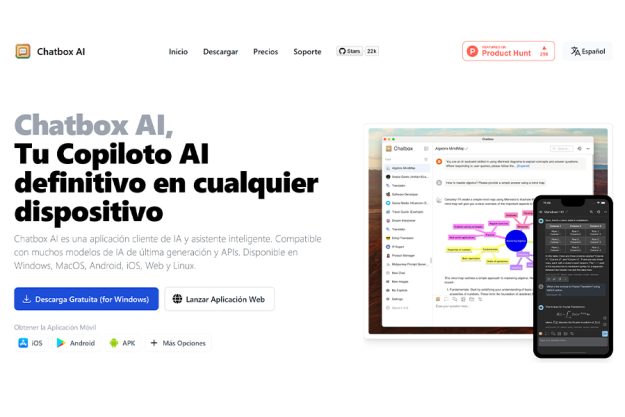 Chatbox AI es una aplicación cliente de IA y asistente inteligente. Compatible con muchos modelos de IA de última generación y APIs. Disponible en Windows, MacOS, Android, iOS, Web y Linux.
